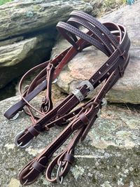 The best leather is used to create all pieces. Parts are hot dipped in oil for lasting conditioning. Most tack items are made with bridle leather which maintains a soft feel in all weather conditions.